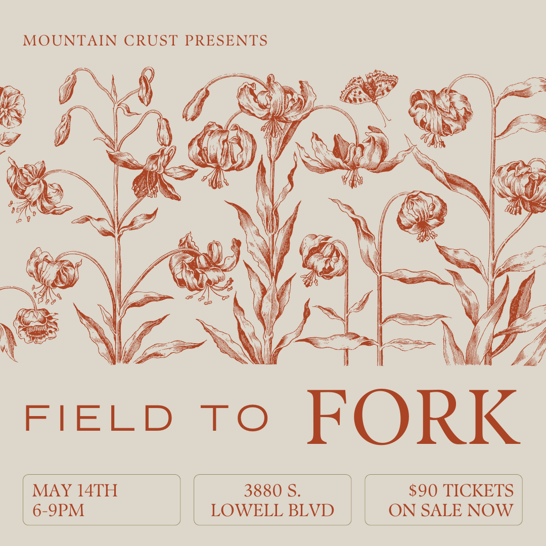 Our Field to Fork (FTF) Dinner Series is all about flexing our foodie muscles while hosting you in our beautiful backyard at Mountain Crust Event Venue!